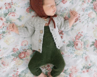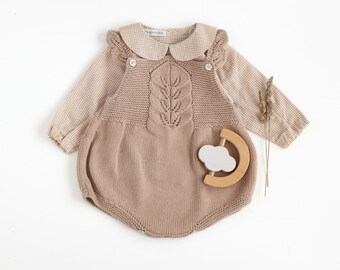Knitted baby overalls, knitted baby romper, baby outfit, knitted overalls, baby gift, knit baby jumpsuit, baby clothes, 100% cotton.