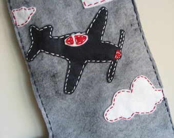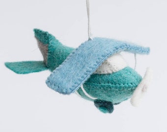 Boys 100% Merino Wool Felt Airplane with Clouds Crown