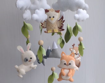 SALE - READY NOW - Woodland mobile - Forest mobile - baby crib mobile - deer - fox - owl - squirrel - acorns - nursery decor