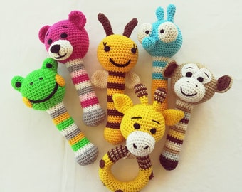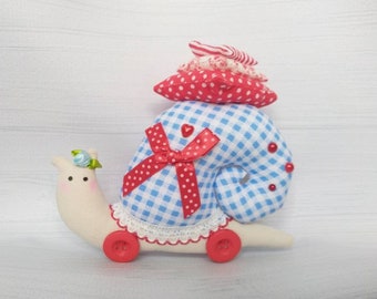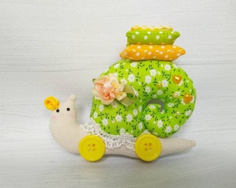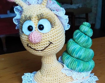 Snail toy, baby rattle toy, hand knitted animals, brown