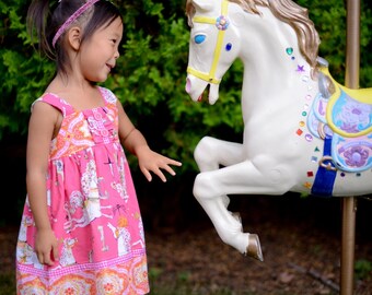 Girls Made to Order Dress in Sizes 1 through 6 Featuring On Parade Fabric by Sarah Jane