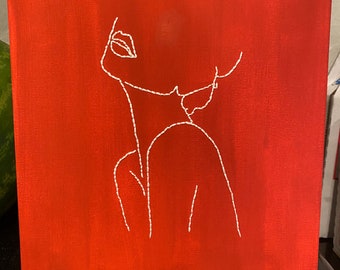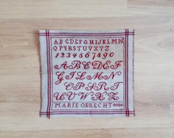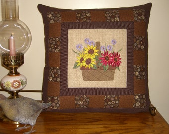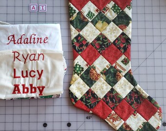 Personalized Hand Embroidered Quilted Pillow Cover 14x14 - Made to Order with RED embroidery