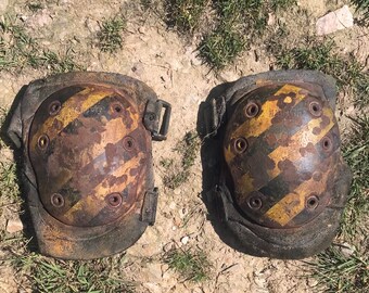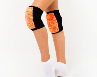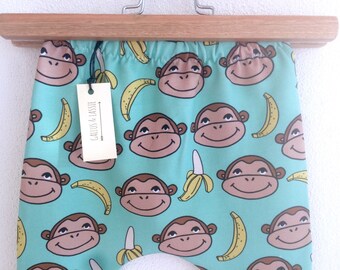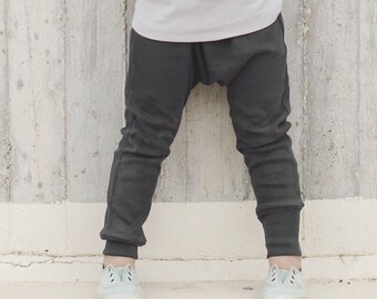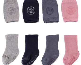 Boys leggings Stripe toddler knee pad leggings Grey and white with yellow and turquoise pads // Size US3month-2years (EU64-92)