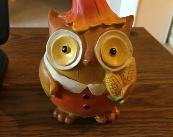 Vintage Owl Figurine Ceramic 1970s Retro Large Statue