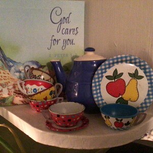 this item was a little smaller than expected as there were no dimensions in the description. It's all on me for not asking for dimensions. I do love the little set though!