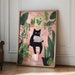 Digital escape art print, black cat art, black cat, vibrant colors, kid's bedroom art print, digital download, black cat painting, cat art