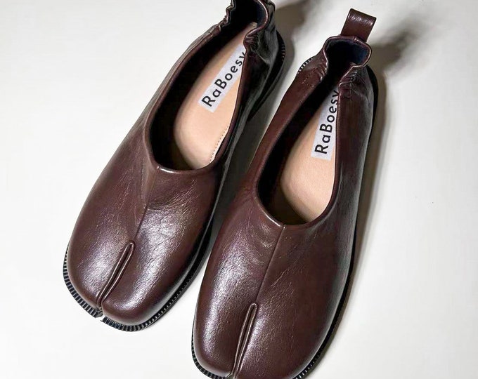 Bailarinas Tabi ecológicas con puntera dividida para mujer / Bailarinas Tabi vintage plegables / Bailarinas Tabi retro marrón, blanco y negro