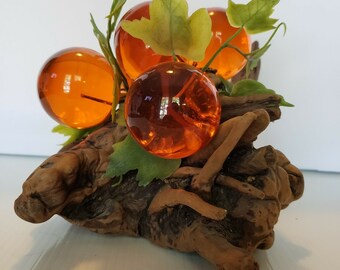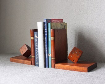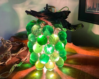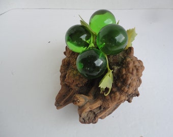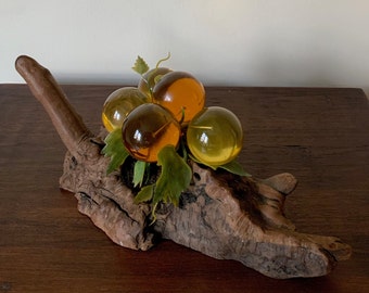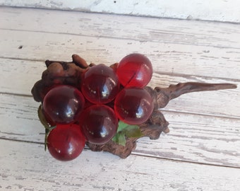 Vintage Bookends Set Resin Lucite Acrylic Grapes Wood Retro Wooden