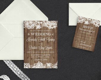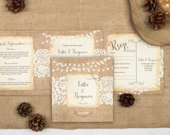 Lace Wedding Invitation, Rustic Lace Wedding Invites, Rustic Invitations