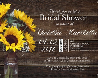 Rustic Bridal Shower Invitation - Country Bridal Shower Invite - Printable Invitation - Rustic wedding shower invite - Sunflowers