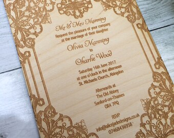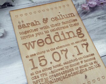 Sweethearts Wood Engraved Wedding Invitations Invites Pack of 10