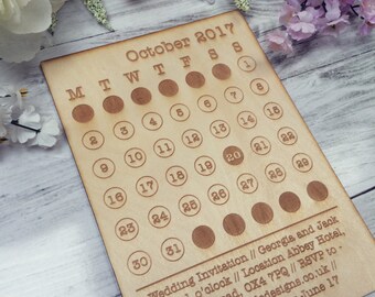 Calendar Wood Engraved Wedding Invitations Invites Pack of 10
