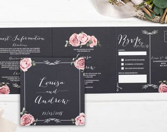 Rustic Wedding Invitation - Double-Folded Chalkboard Floral Framed (landscape)