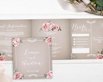 Rustic Wedding Invitation - Double-Folded Kraft Rustic Rose (landscape)