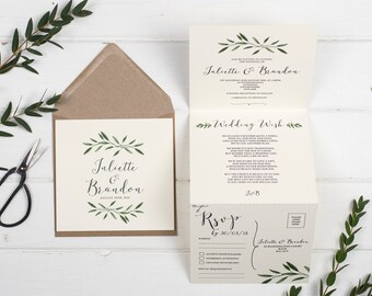 Rustic Wedding Invitation - Double-Folded Rustic Wreath