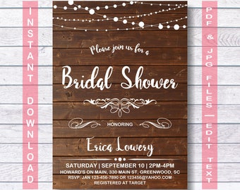 Bridal Shower Invitation, Instant Download, RUSTIC Bridal Shower Invitation, Bridal Shower Invite, Bridal Shower Invites, Rustic Wedding