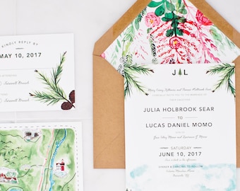 Rustic and Woodland Mountain Wedding Invitation: Florals and Trees