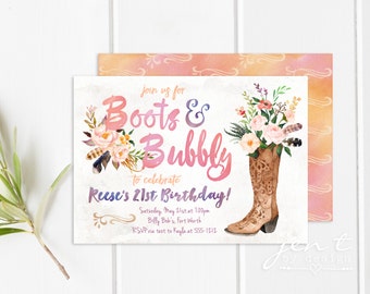 Boots and Bubbly Invitations - Rustic Invitations - Cowgirl Boot Invitations