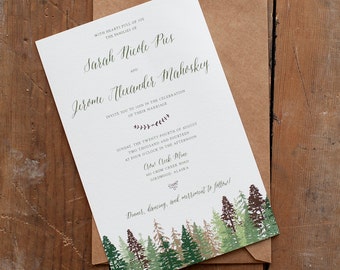 Wedding Invitation, Tree Wedding Invitation, Mountain Wedding Invitation, rustic wedding invitation, wedding invitation, trees - The Katie