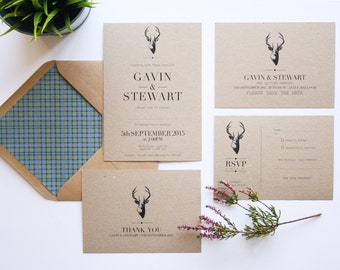 Stag Wedding Invitation Set. Rustic Wedding Invites. Wedding Invitation Sample