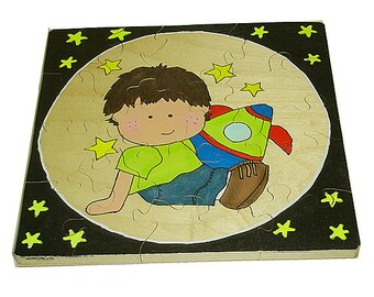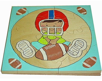 This vividly colored wooden puzzle is hand painted using AP Certified non toxic wood dye. and sealed with krylon triple thick glaze. It measures a 13" long,8" tall, and 3/4" thick. I hand cut this puzzle piece by piece on a scroll saw using a solid piece of maple hardwood ( a strong, dense and durable wood that does not splinter with rough and tumble play.