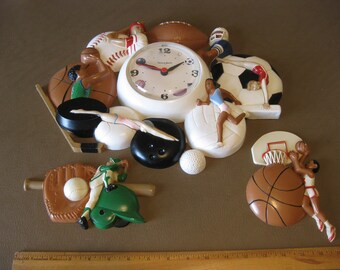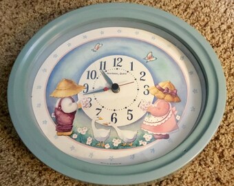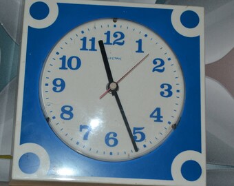 Vintage Burwood Bath Word Wall Clock 2654 Plastic Retro Beige Tan 1980s