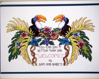 This is an iron-on cross stitch pattern leaflet only. It is not a kit or a completed project. The leaflet is from 1981 and published by Craftways. It has 16 pages. It has some shelf wear but overall it is in good used condition with no rips or stains.