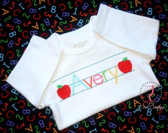 This apple shirt, baby gown, or dress is too cool for JUST school! This design is unique and can be easily customized by changing fabric or thread colors. It makes a great coordinating sibling outfit also.