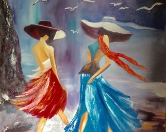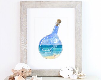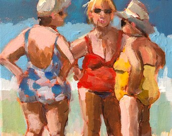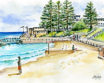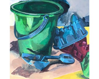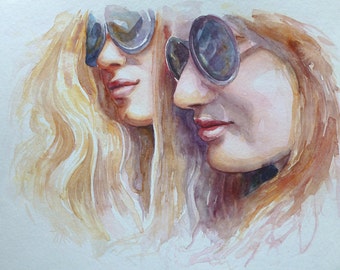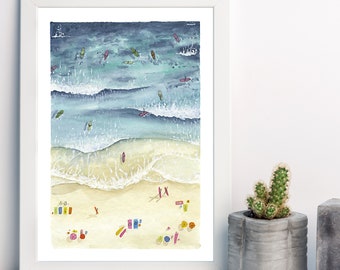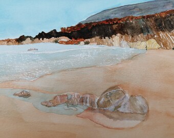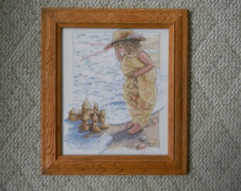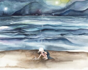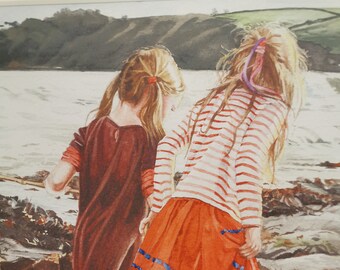 CLEARANCE - Original watercolour girls on the beach on watercolour paper - Sandcastles