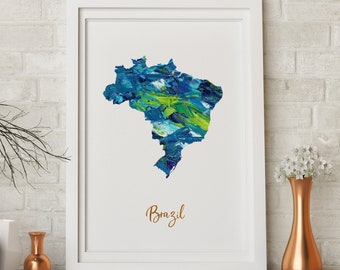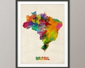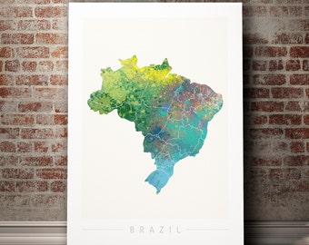 Brazil Watercolor Map (Brasil), Art Print (493)