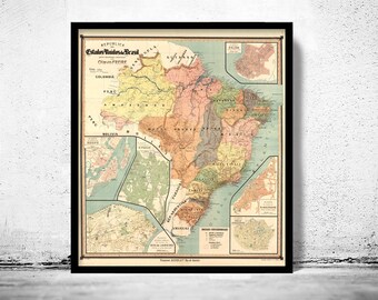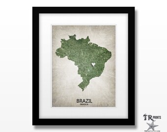 A watercolor map of Brazil (Brasil) on a vintage background, art print