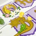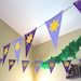 *Each banner flag is made from a violet purple and light purple cardstock and has gold foil and gold glitter cardstock lettering.