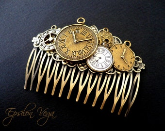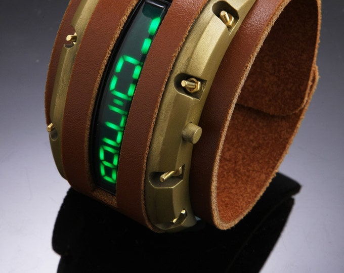 Fully Functioning Sci-fi Steampunk Watch - Tan and Brass with linear green LED watch.