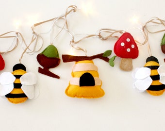 Materials: felt, stuffing, satin ribbon, thread, fairy lights