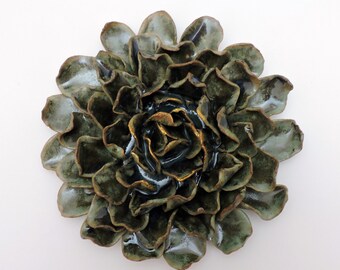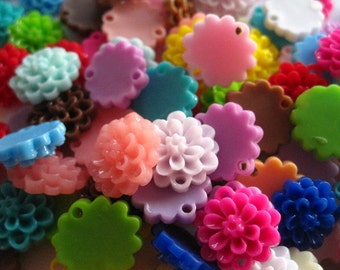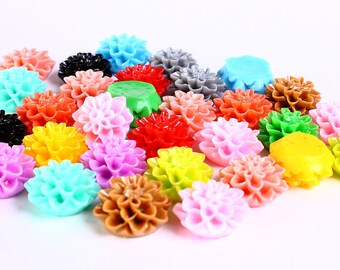 greyish green blue Dahlia Cabochon Resin Flower Earrings studs