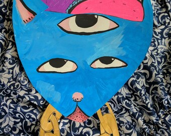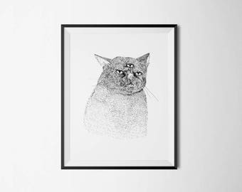 Vintage Gig Pity Kitty Print Big Eyed Cat Litho 5x7 Color Lithograph
