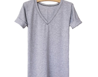 Off shoulder tunic asymmetric shirt t-shirt for women rock shirt gray