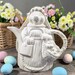 Ceramic White Rabbit Planter ~ Floral details ~ Easter decor ~ Succulent Planter