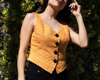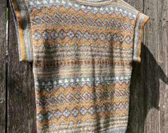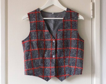 Toddler wool vest in pastel blue, brown and grey Polka dot baby vest with golden buttons, linen lining. Size 1-2,5 years