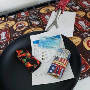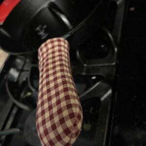 5 out of 5 starsLove these Charming Burgundy Check Cookware Handle Covers. They match my Burgundy Check Kitchen and they really help me grip my pots and pans Handles transferring them to the Sink. They also look so Cute too!! A Good Fast Delivery and great Packaging. Thankyou. Jean Mooney