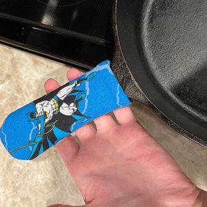 DV made a custom sized skillet sock for me for my 6” cast iron skillet… and she made it so quickly! Very fast response time, prompt shipping, and it fits perfectly. I also leave it on while low cooking on the stove and it still doesnt get too hot to hold. I’m very happy!
