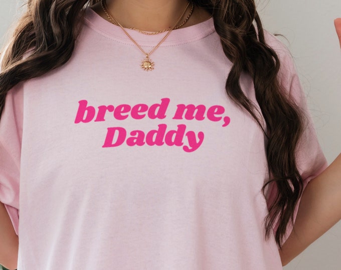 breed me, Daddy cute pink t-shirt - breeding kink tee, naughty gift for her, sexy gift for submissive, breeding fetish BDSM shirt, DDlg DDlb