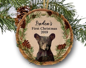 First Christmas Ornament, Embroidered Personalized Ornament, Baby Polar Bear in Purple Sweater, Handmade by OrdinaryMommy on Etsy