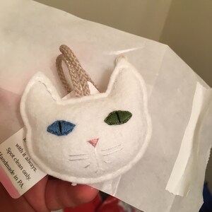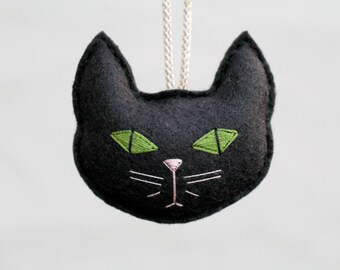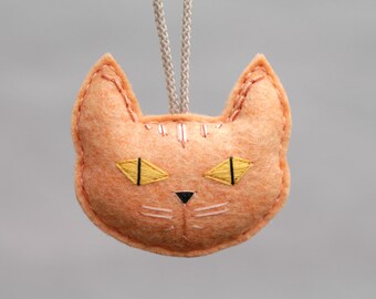 Materials: wool felt, embroidery floss, nylon cord, polyester fill, label