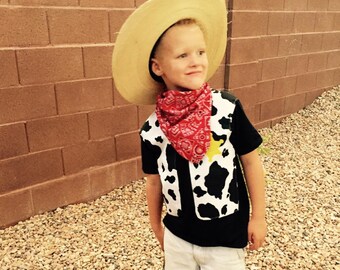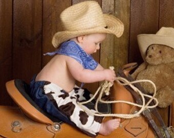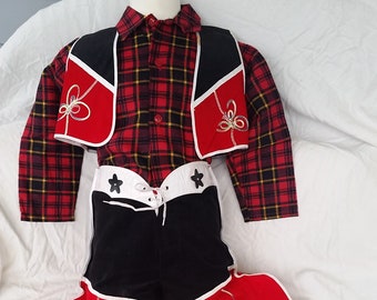 Boys Cowboy Costume Outfit includes Jeans with Chaps, Shirt and Bandana, Kids costume, Can be cowgirl, too!