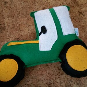 This bright felt cushion is perfect for anyone with a passion for vehicles or for a tractor themed room.