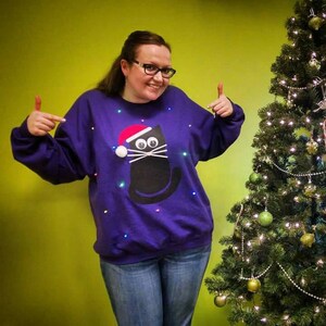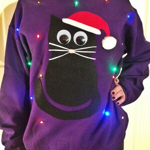 Read the full title Light Up UGLY CHRISTMAS SWEATER - Christmas Cat!!! (Also available in Hoodie and Kid's Sizes!) _____**Fast Shipping**_____