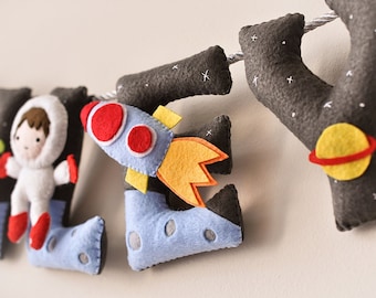 A perfect addition to your child's bedroom custom made to match their bedroom color and theme! Letter and embellishment sizing is approximately 5x5". Length of ribbon will be arranged after sale is completed. Each letter is hand cut from eco friendly felt, hand stitched with quality embroidery thread and stuffed with hobby fill to create a cute plump effect.
