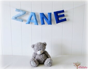 Personalized felt name banner - name garland - ombre blue wall art - Nursery decor - MADE TO ORDER