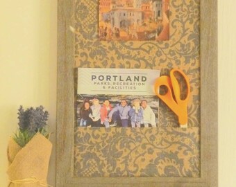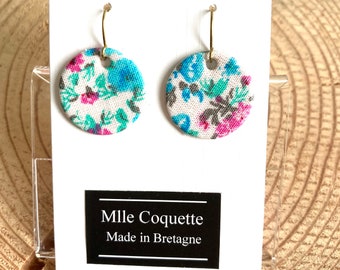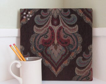 Pinboard floral fabric patchwork. Round fabric covered cork pinboard with button pins